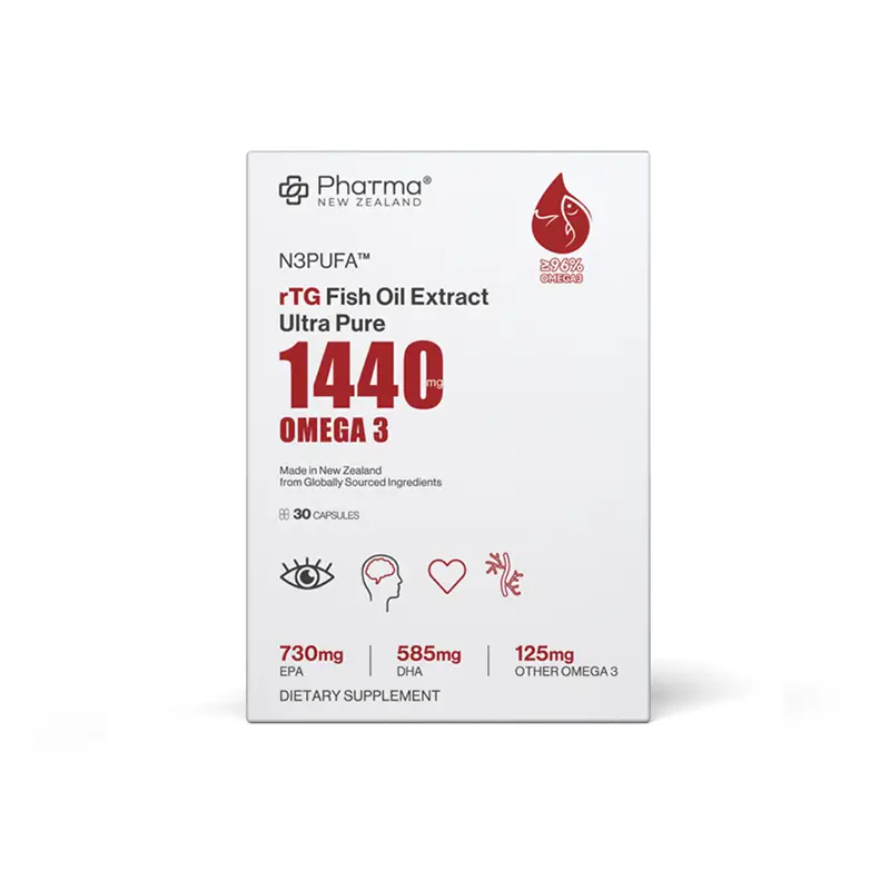 Our high-purity rTG Omega-3 fish oil offers an exceptional purity level of greater than or equal to 96%, with recent tests showing results as high as 98% to 99%. This product undergoes a meticulous process, passing through more than 10 layers of molecular distillation, ensuring that impurities are removed and the omega-3 content is highly concentrated. With capsule filling weight of 1,500 mg, it contains 730 mg of EPA and 585 mg of DHA, along with DPA, a less common but highly valuable omega-3. Packaged in blister packs of 30 capsules, this fish oil is designed to support cardiovascular, brain, and joint health.